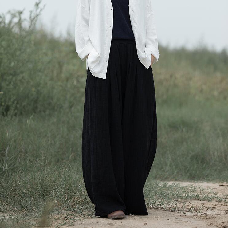 2023 Autumn Solid Loose casual Pants, 5XL 6XL Spring Women Vintage Elastic Waist Cotton Linen trousers Wide Leg long Pants