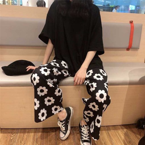 Lolita Style 2023 Autumn Korean Ulzzang Harajuku Personality Hip Hop Street Flower Print Loose Wide Leg Pants Ankle-leng