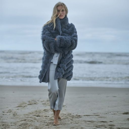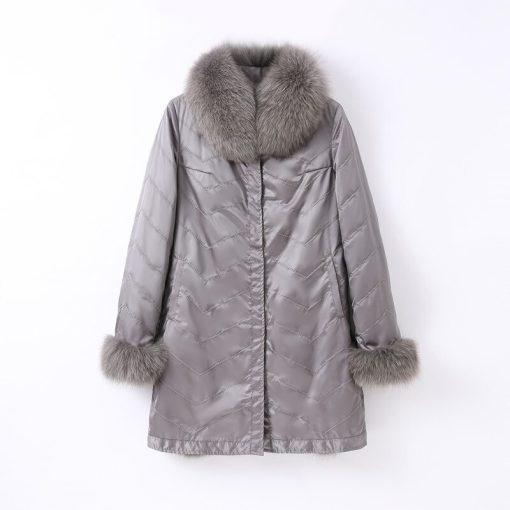 Women Winter Long Fox Fur Coat Jacket New Warm Double Side Parka