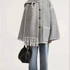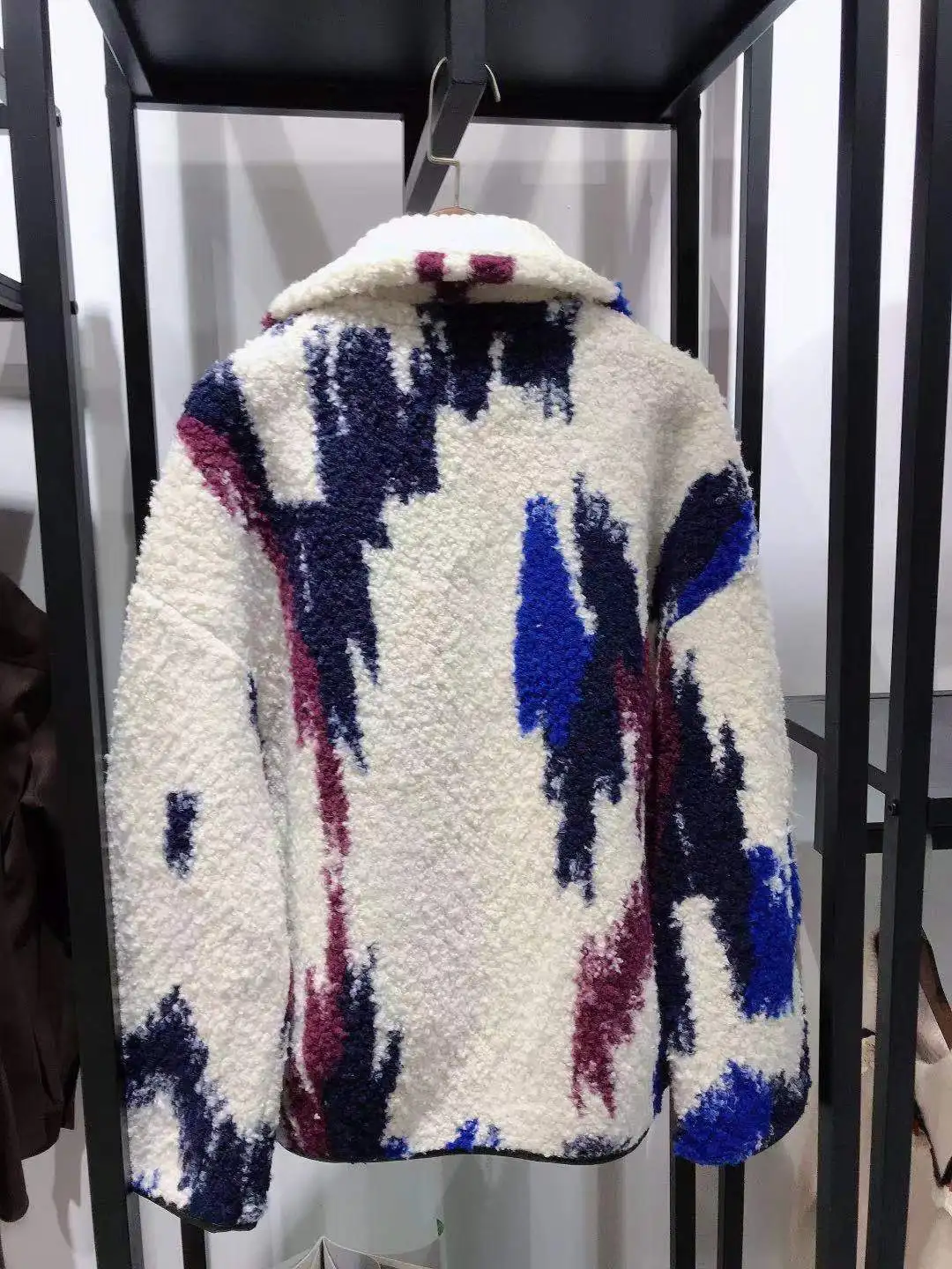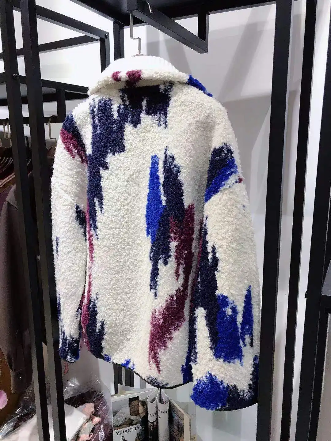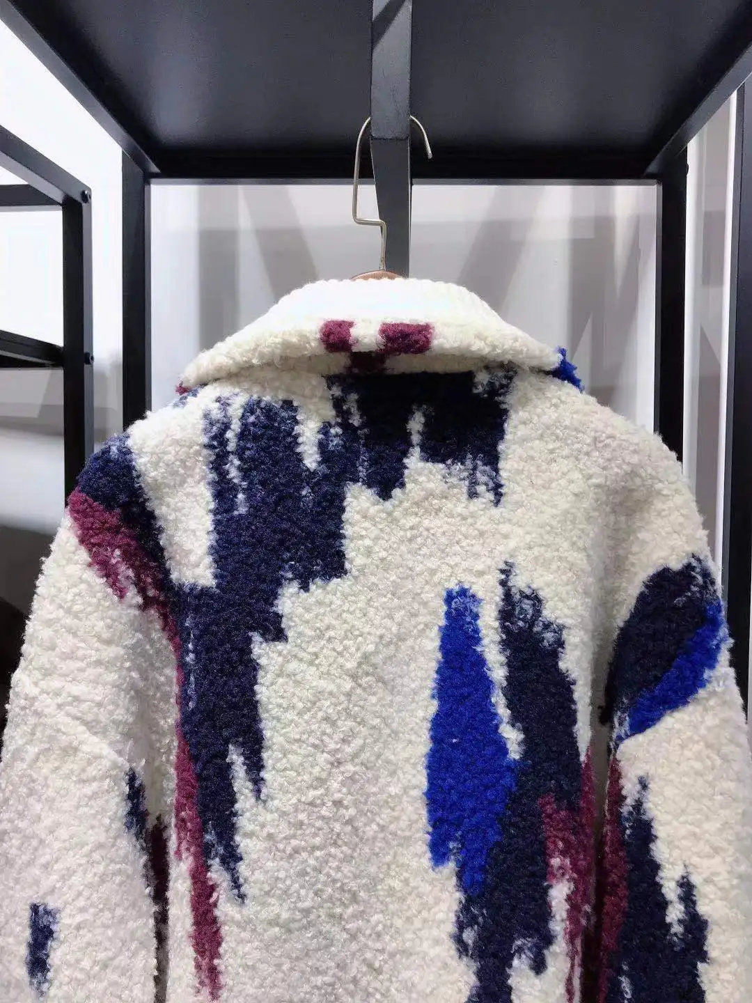 Women Woolen Coats Half Zipper Printing Turn-down Collar Loose Long Sleeve Vintage 2023 Spring Female Jackets
